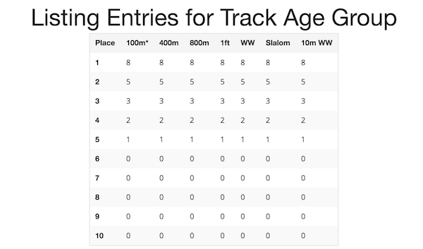 The "Overall Track Champion" is determined by taking the placing-results of multiple other competitions.